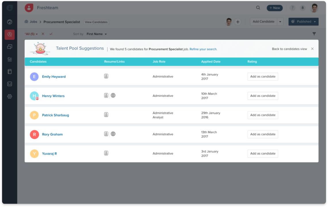 If you find impressive candidates but don’t have a suitable role for them currently, archive them to the Freshteam talent pool. The talent pool will eventually grow to become a reliable source of great candidates. As more relevant roles open up, you can invite candidates from your talent pool to pursue them.