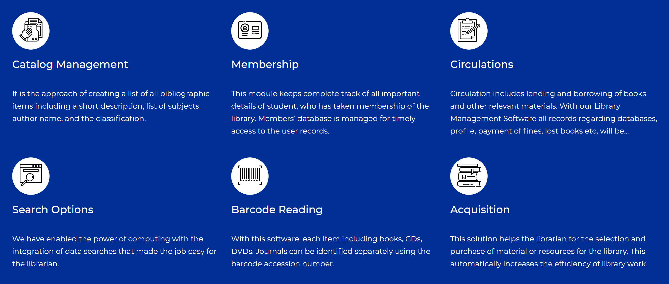 Library management software is developed to manage the inventory. Library software helps to keep a record of all the things present in a library including books, DVDs, CDs, and Magazines. It is a major software in colleges, institutions, universities and at Govt libraries to provide full support to the librarian and other support staff.